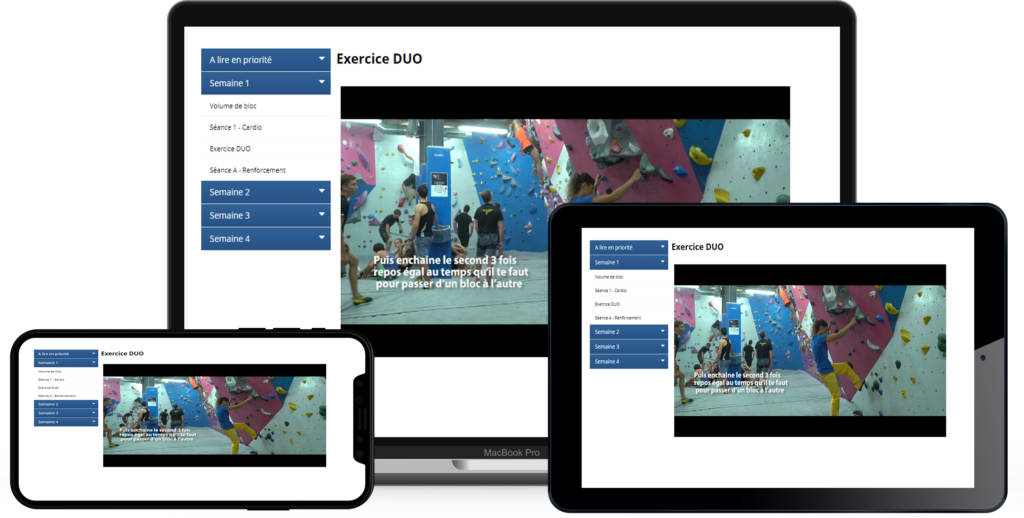 Le pack de 3 programmes c'est plus de 90 séances de grimpe prêtes à l'emploi... et accessibles partout.